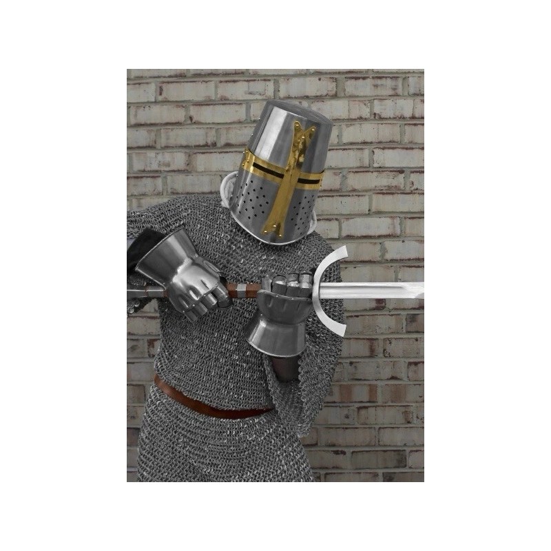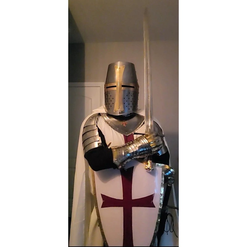 The helmet is adjustable and comes with a dexterity fit for comfort and functionality. The design is inspired by the Knights Templar, making it a perfect addition to any medieval enthusiast's collection. This original piece was crafted in India and is sure to impress.