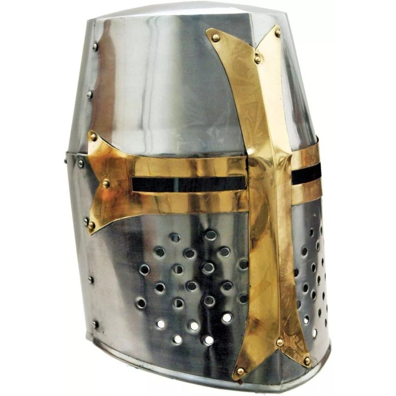 Tattva Tactical Full Size Brass Crusader Barrel Helm Full Size Helmet Medieval Knights Templar