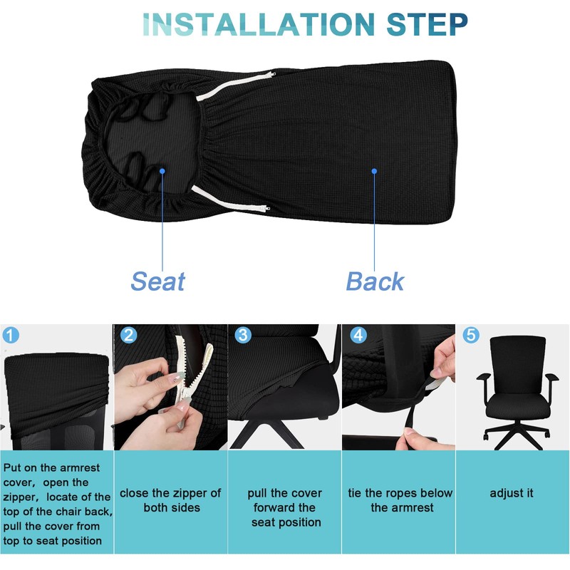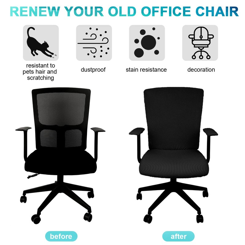 - Decorative and Stylish: stretchable chair covers are black, simple and stylish, they can be adapted to various styles of office chairs, rotating chairs and high back chairs, adding a beautiful look to your chair