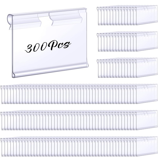 Tatuo 300 Pcs Reusable Plastic Wire Shelf Label Holders, Clear Price Card Sign for Pantry Retail Supermarket Merchandise Shopping Mall Shop Ticket Display Holder Clip on Design, 2.36" L x 1.65" H