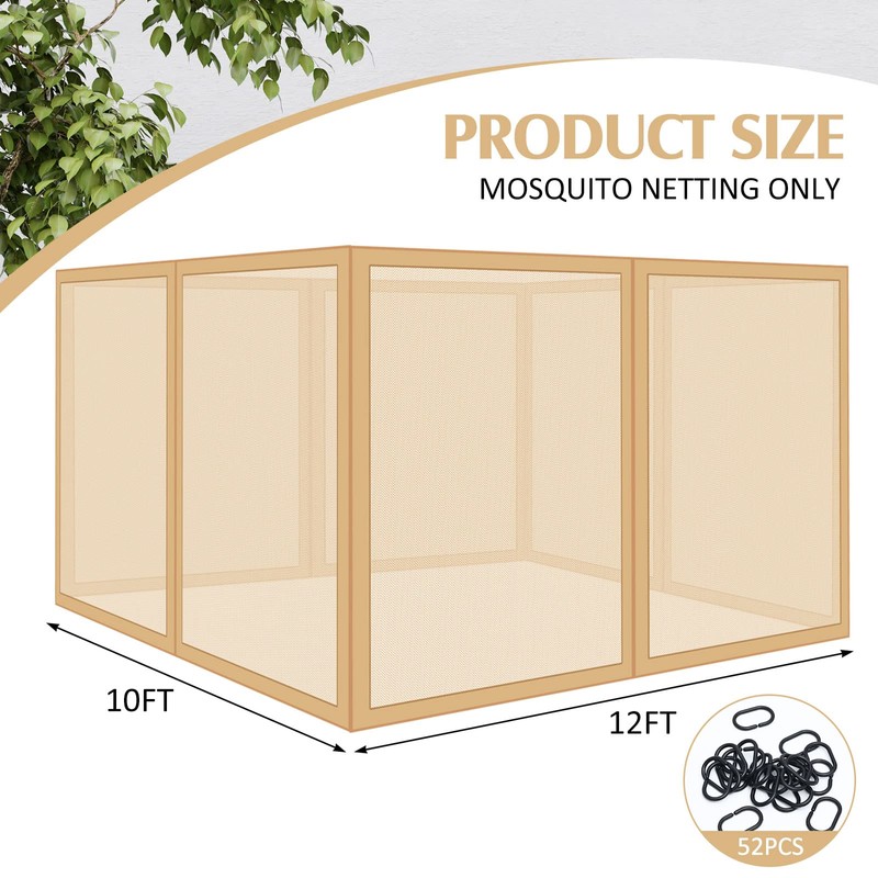 Tatuo Universal Replacement Mosquito Netting for Patio Gazebo Mosquito Net Camping 4 Panel Mosquito Net Gazebo Canopy Replacement Patio Mosquito Netting with Zipper for Porch (Khaki, 10x12 FT)