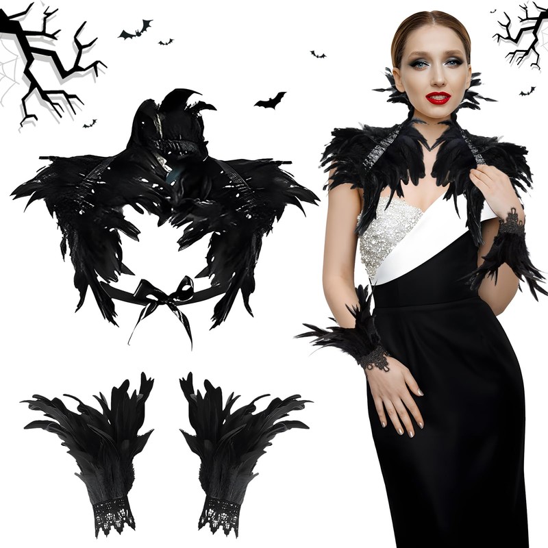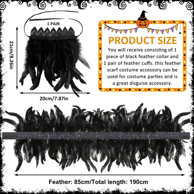 - Package contents: the set contains a carnival feather collar black and a pair of feather gloves to complete your elegant dark style. Whether you want to be a witch for Halloween or achieve a gothic look, it is perfect for you.