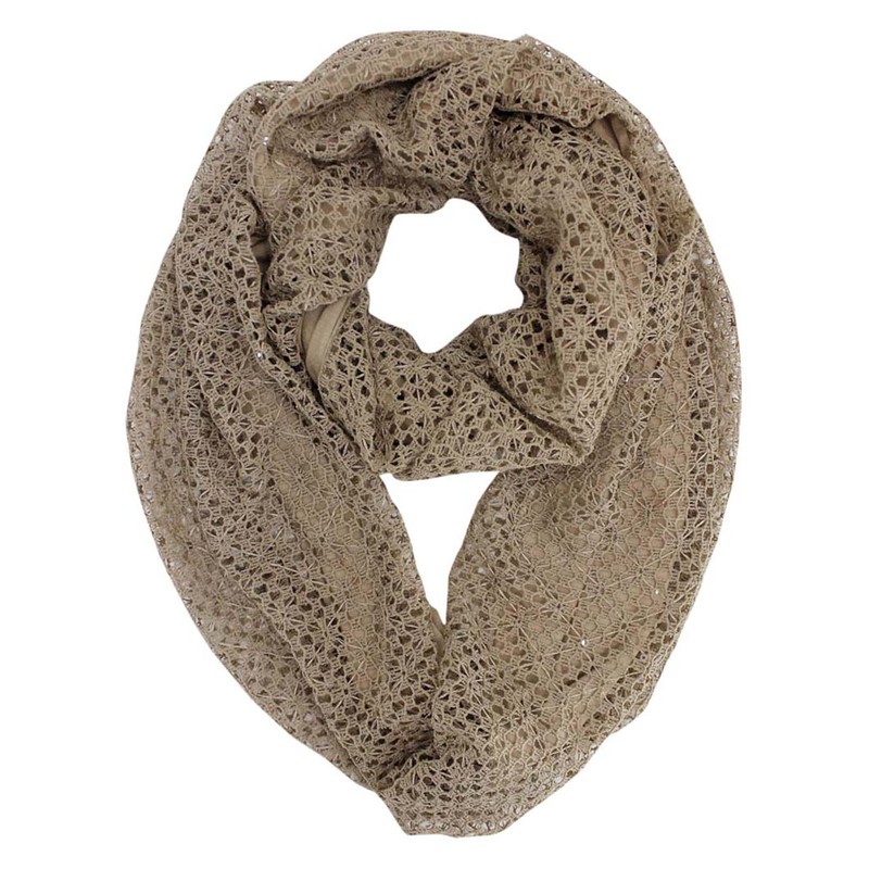 Taupe Net Infinity Scarf With Sequin Overlay