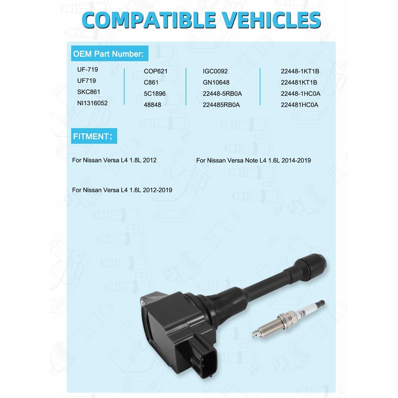 TAUTOY Set of 4 UF719 Ignition Coil Pack & Iridium Spark Plug For Nissan Versa 1.8L 2012 1.6L 2012-2019,Note 1.6L 2014-2019,Replace # GN10648 COP621 C861 5C1896 224481HC0A 224485RB0A 224481KT1B