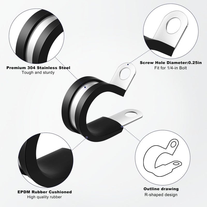 - Versatile Application: The clamps can be used in automotive, industrial, boat, outdoor, home decoration, DIY, RVs, and any place where vibration may occur. They are ideal for fixing and supporting pipes, wires, cables, and line management and repair.