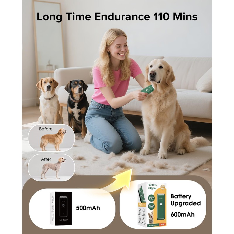 - Usb Rechargeable- Being cordless is convenient as you can clip your furry friends anywhere, which is typically in the backyard,without needing an extension cord,holds a charge for a long time