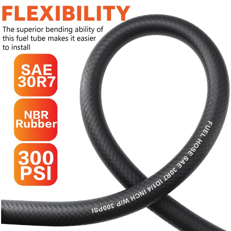 - Material: Made of high-quality NBR, the fuel line is oil-resistant and heat-resistant. In addition, the three-layer structure of fuel line hose makes it more pressure-resistant and stronger.