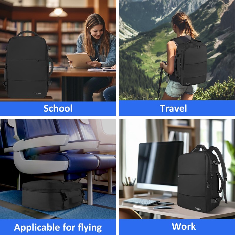 Taygeer Easyjet Cabin Bag 45x36x20 Underseat, Travel Backpack Men Carry On Cabin Size Weekend Luggage Overnight Laptop Rucksack Plane Hand Luggage Bag Laptop Backpack with Shoes Compartment, Black
