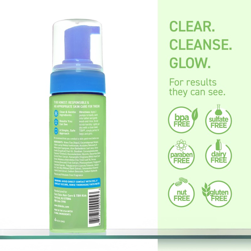 - From the makers of Fairy Tales hair products, TBH Spot Foaming Kids Face Wash gives kids and teens a gentle option to help manage acne. Unlike traditional acne face wash, our face wash for kids & teens helps to gently exfoliate and remove dead skin & daily grime. Deep clean your pores gently yet effectively with our foam face wash!
