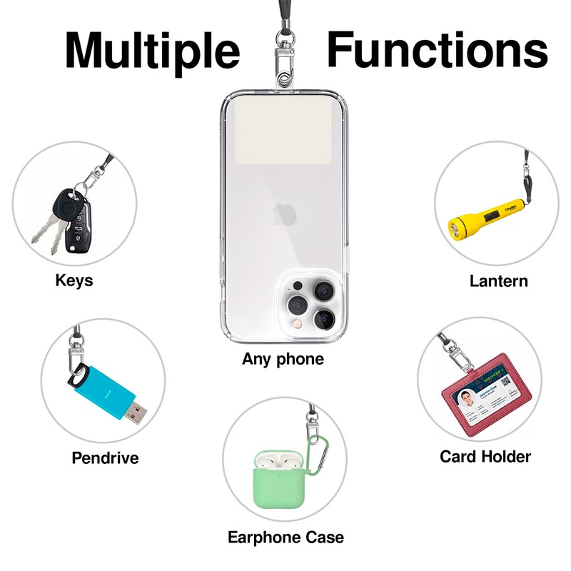 Multifunctional: The lanyard can be connected to your mobile phone, keys, ID cards, hotel cards and other accessories. In addition, as it is adjustable, it can be hung either on the shoulder or across the body, guaranteeing the safety of your phone and accessories and preventing falls.