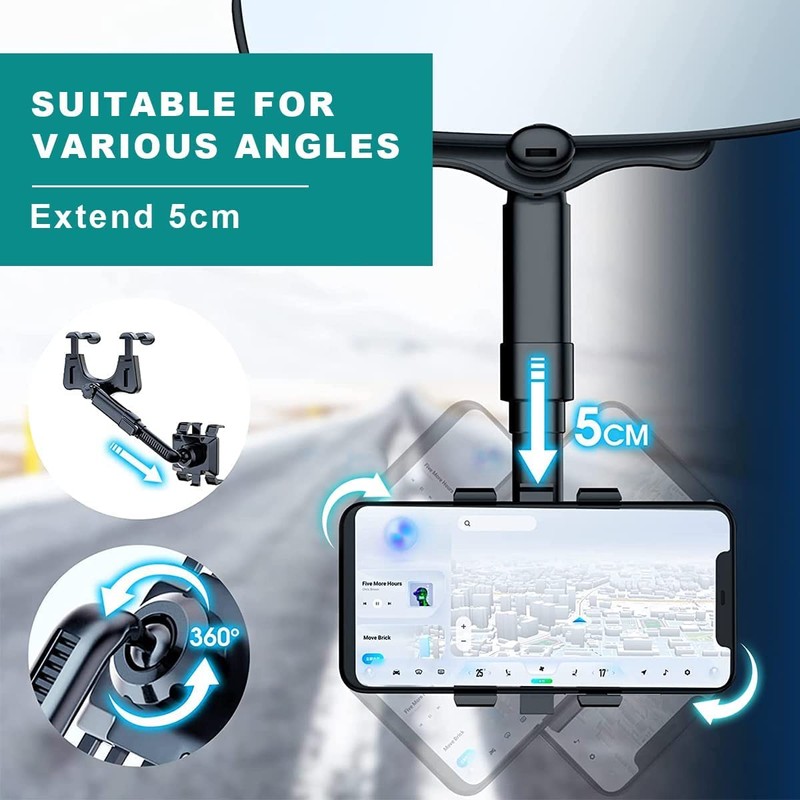 - 【Soporte de Telefono para Móvil Retrovisor Coche】 :Hecho de material ABS de primera calidad, protección ambiental y duradero para un uso prolongado, el soporte de montaje para teléfono para automóvil tiene una gran resistencia y estabilidad. Este es un soporte para teléfono móvil que se puede sujetar al espejo retrovisor para fijarlo. para que el conductor pueda notar claramente la ruta de navegación sin bajar la cabeza sin afectar la vista del conductor, lo cual es más seguro.