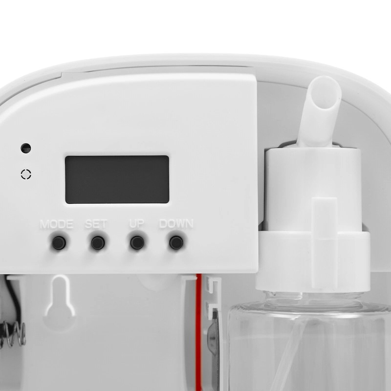 Specification Material: PP Process: Injection Molding Color: White Shape: Rectangular Style: Modern Mount Type: Wall-Mounted/Tabletop Operation Mode: Buttons Display Screen Type: LED Charging Interface: Type-C Voltage: DC1.5V/5V Power: 5W/8W (Type-C Power Supply) Batter Type: 3 * D-Size Dry Batteries (Not Included) Adapted Batteries: Dry Batteries, Rechargeable Batteries (Not Included) Number of Fog Outlets: 1 Available Timing Periods: 5 Battery Life: Approx. 100 Days Spraying Interval: 90-600s Working Time: 3/4/5/6/7/8s Noise: <30dB Bottle Capacity: 150ml/5.07oz Coverage Area: 100-300m³/3531.47-10594.4ft³ Product Size: 14.4*6.9*18.2cm/5.67*2.72*7.17in Package Size: 24*20*8.5cm/9.45*7.87*3.35in Gross Weight: 0.5kg/1.1lbs Net Weight: 0.4kg/0.88lbs