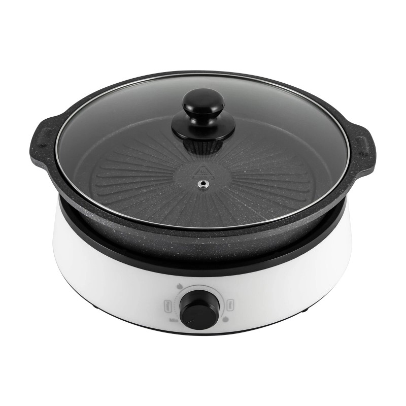 - Please clean this product before first use. Please unplug the power cord first and ensure that the cooking pot and grill pan have cooled before washing. Please clean the pot with soft sanitary ware, and then wipe it with a rag to keep it as dry as possible. The pot can be cleaned with a dishwasher. Please do not use stainless steel wire ball to clean the product, so as not to damage the surface. Please do not wash the base of the appliance in water to avoid the risk of electric shock and functional failure.