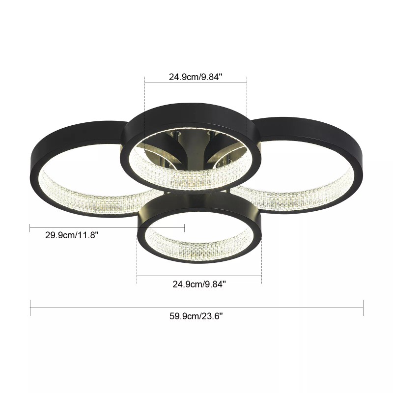 Modern Dimmable Chandelier LED Acrylic Ceiling Light 4 Rings Flush Mount Lamp US