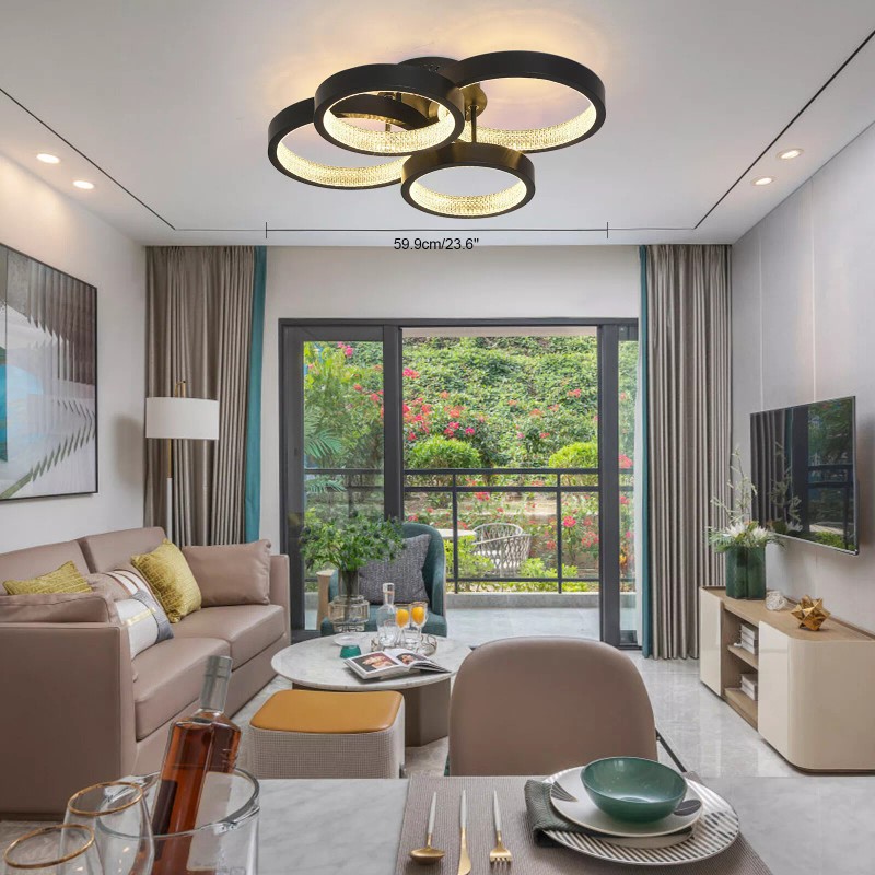 TBVECHI Modern Dimmable Chandelier LED Acrylic Ceiling Light 4 Rings Flush Mo...
