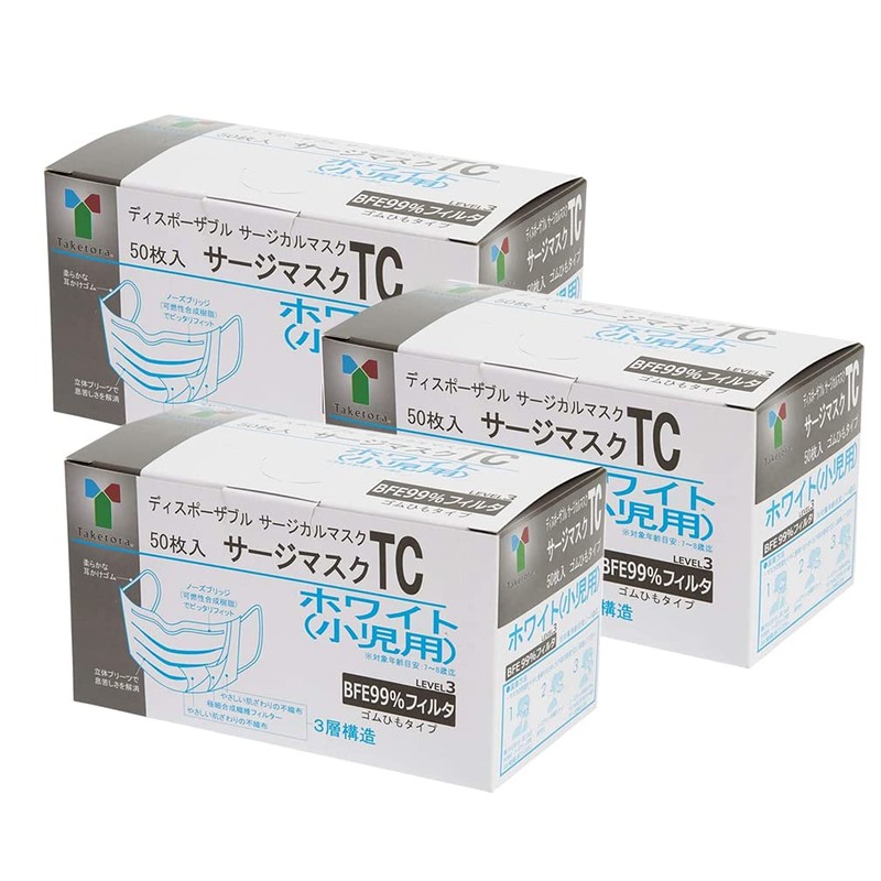 [竹虎] サージマスクTC ホワイト 小児用 50枚入 3箱 (計150枚)