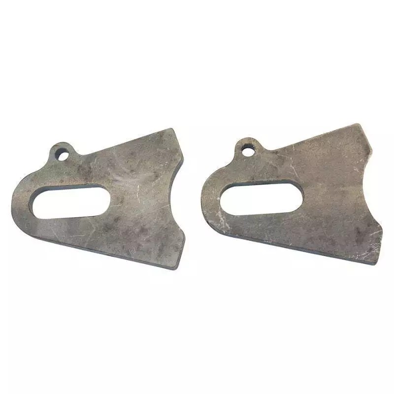 TC Bros. Universal hardtail axle plates with 1" slots—ideal for newer Harley Davidson® models with either 1" or 25mm axles. These plates, cut from 3/8" thick steel, feature an integrated fender mounting tab. Perfect for hardtail builders with tubing access but in need of ready-made axle plates.