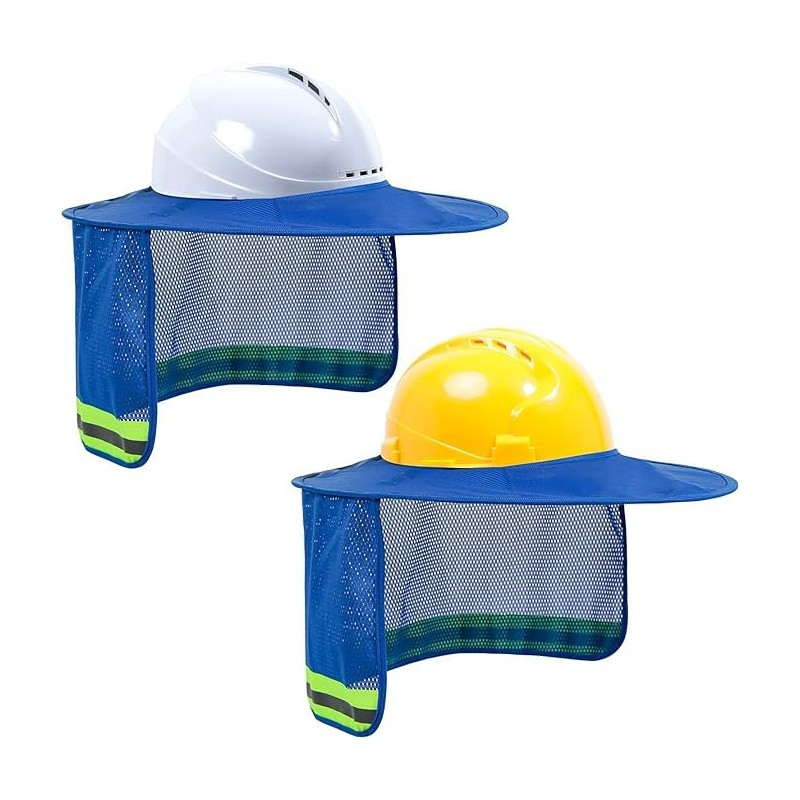 TCCFCCT Hard Hat Sun Shade - Full Brim Mesh Neck Shield With Reflective Strip, High Visibility Visor Neck Shade Accessory (Hat Not Included), 2 Packs Blue