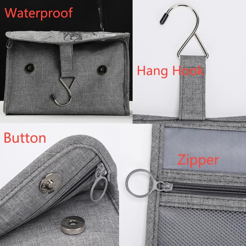 Tcdwla Kulturbeutel Herren Damen, Kulturtasche zum Aufhängen, 1 Stück Waschtasche mit Haken, Klappbar, Große Kapazität, Mehrere Kammern, für Reise, Badezimmer, Kinder (Blau)