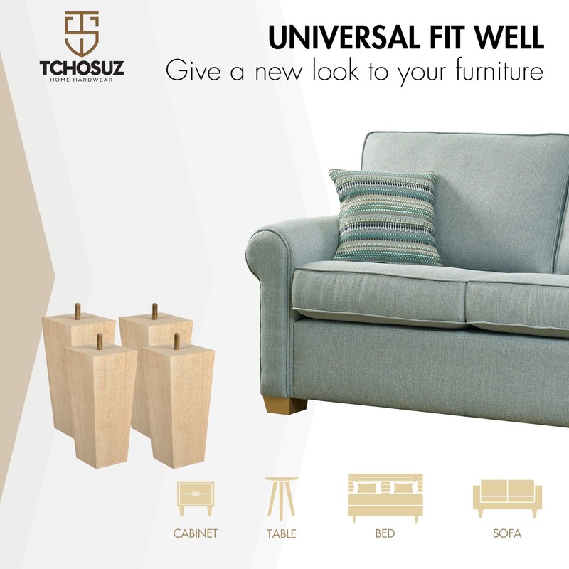 - SOLID WOOD FURNITURE LEGS - Tchosuz Wooden Furniture Legs are made of eco-friendly rubberwood, solid wood material makes the product can support more than 400lbs. With its humidity <12%, no beetle, no musty, ensure the safety to use at home.