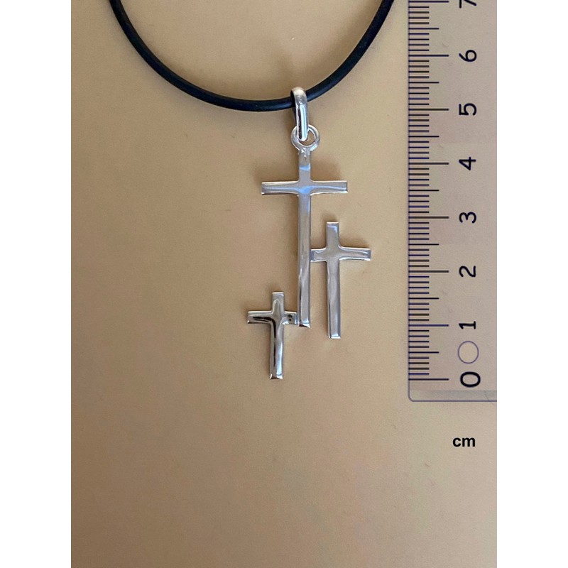 TCLAUDIA Collar Cruz Triple Plata 925 con Hilo Negro 45cm - Joyería Religiosa Mexicana Artesanal de alta calidad - Regalo Hombre Mujer, Día del Padre, Aniversario, Cumpleaños