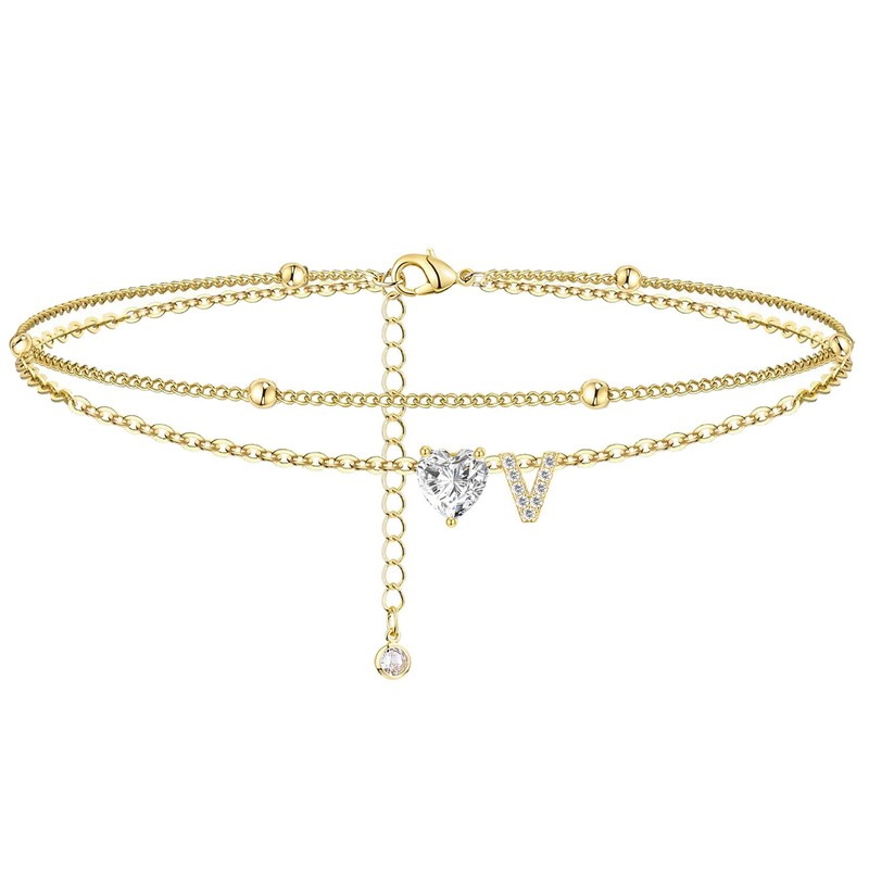 - Ankle Bracelets Design: The letter anklet design with a shiny CZ heart and beaded chain,multi-layer design,match the initial giving the gold anklet special meaning. name anklets is the perfect choice for your summer jewelry