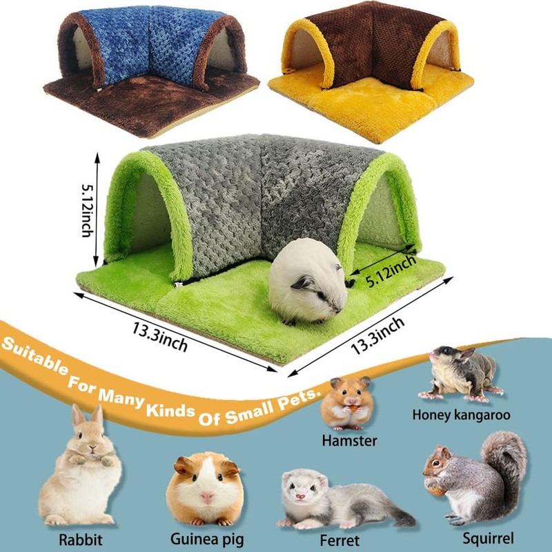 • 【2-in-1 Bed and Tunnel】: This guinea pig hides and toys is a combination of warm bed and L-shaped tunnel, featuring soft plush . After pets get tired from active exercising, they can just lie down directly for comfortable rest.