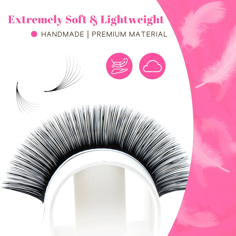 - 【Super soft cashmere easy fan lashes】Our cashmere eyelash extensions are made from upgraded cashmere fibers. It's more soft and light weight. They fan like butter and help you create the most luxurious fluffy sets and create thin bases. You can make the fans from 2D to 10D easily without any professional skilled technology, and get hybrid, volume or mega volume sets.