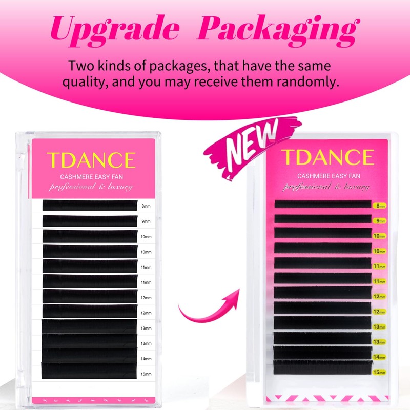 TDANCE Cashmere Easy Fan Lash Extensions 0.03mm D Curl 18mm Single Length Matte Black Mega Volume Individual Lash Extensions For Professional Use