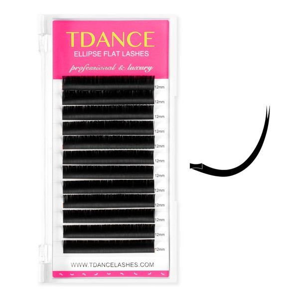 TDANCE Classic Lash Extensions Flat Lashes Eyelash Extensions 0.15mm DD Curl Ellipse Eyelash Extensions 12mm Mixed Black Matte Individual Lashes Salon Use(Flat,DD-0.15,12mm)