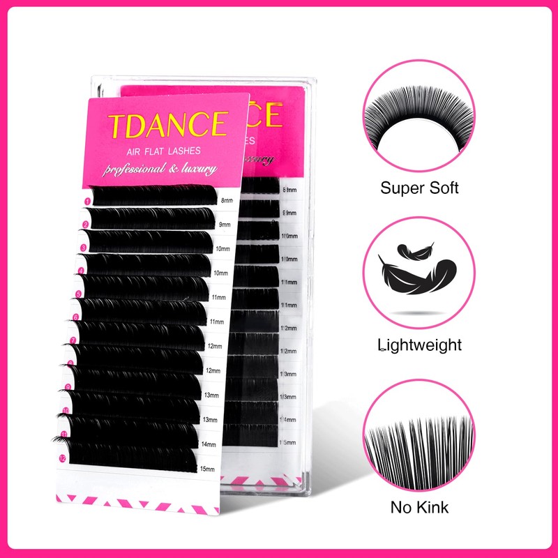 TDANCE Flat Lash Extensions 0.15/0.2mm Thickness Super Soft Air Flat Lashes E...