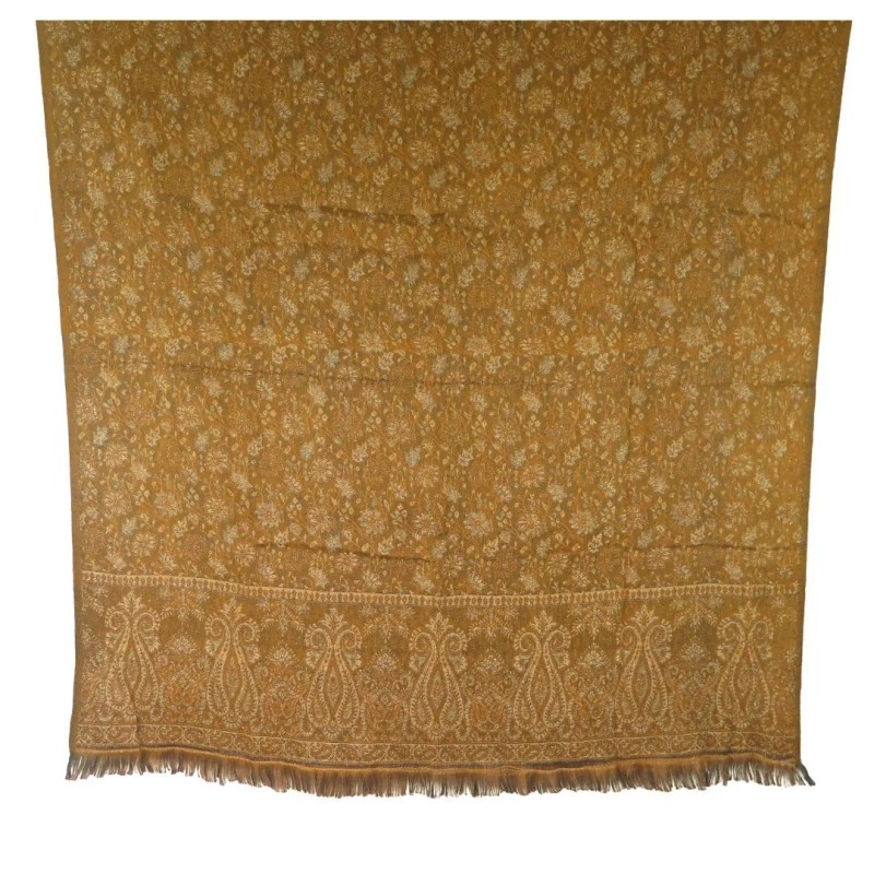 TDbN | Tribal Designs by Neela Throw/Shawl | Yak + Sheep Wool Blend | Nepal |Handmade | Paisley Design| Khaki