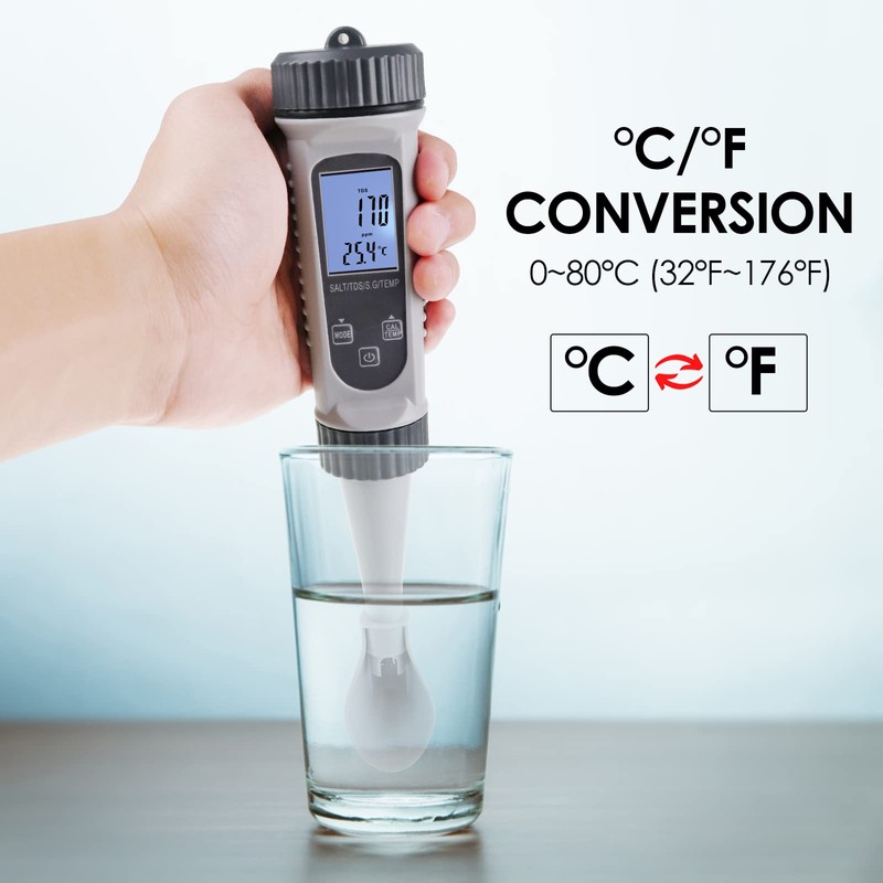 - With advanced sensors and a digital display, our TDS Temperature S.G Salt Salinity Meter delivers accurate and reliable readings for your water testing needs.