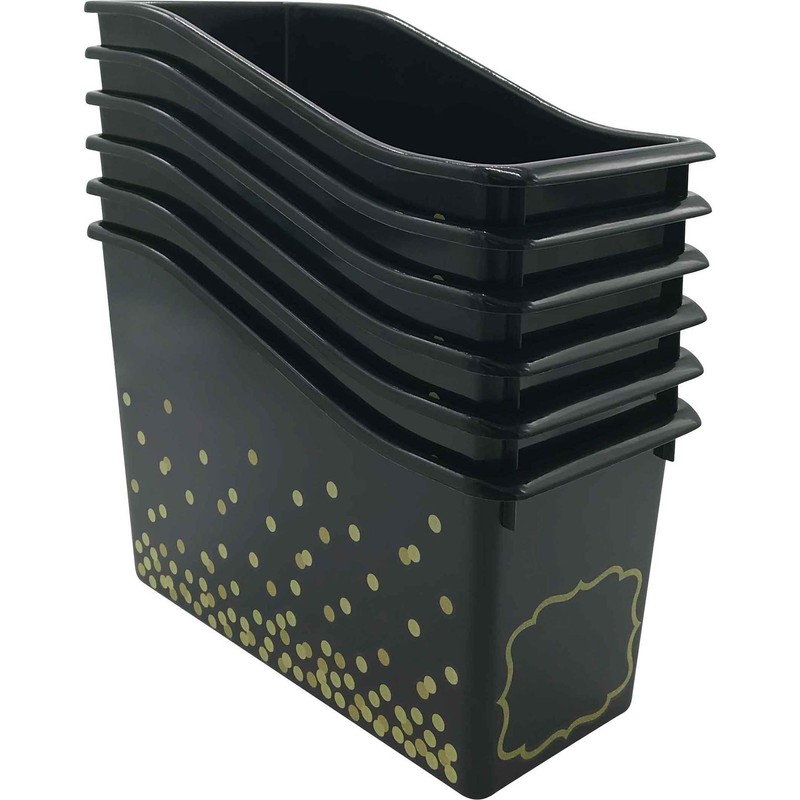 Teacher Black Confetti Plastic Book Bins - 6 Pack