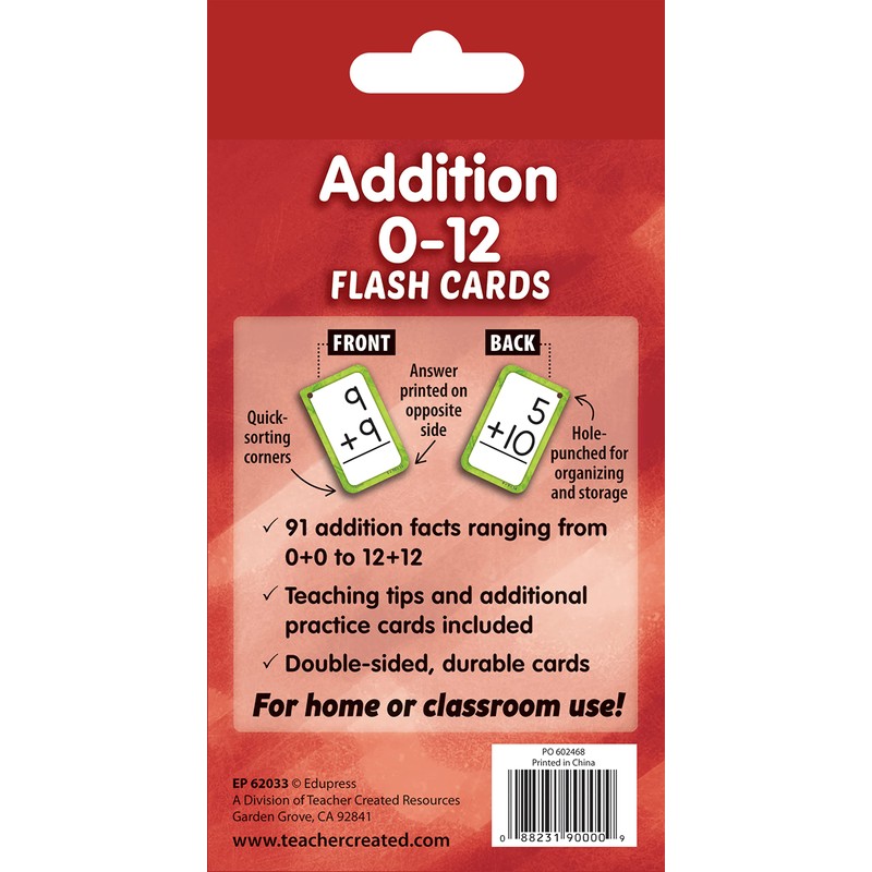 Teacher Created Resources Addition 0-12 Flash Cards (EP62033)