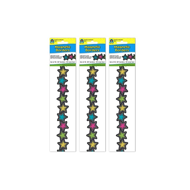 Teacher Created Resources Chalkboard Brights Stars Magnetic Border, 24 Feet Per Pack, 3 Packs