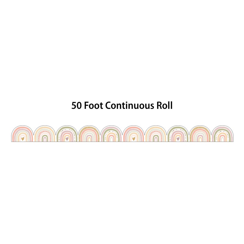 - DIMENSIONS: The roll of border trim measures 2.75 inches x 50 feet. This is the perfect size for decorating bulletin boards, walls, doors, and other displays around the classroom. Cut to your desired length!
