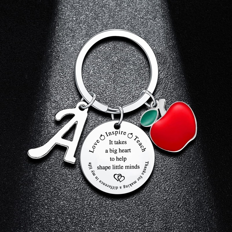 - 🍎Best Gifts:Come with A-Z 26 Initial Letter Name Pendant,What Better Way to Show Your Teacher Appreciation Than with a Unique Teacher Keychain.just take this fashion designed keychain into consideration.The meaningful engraving words make it an unique gift for your respectable teacher.He or she must be moved by the gift!