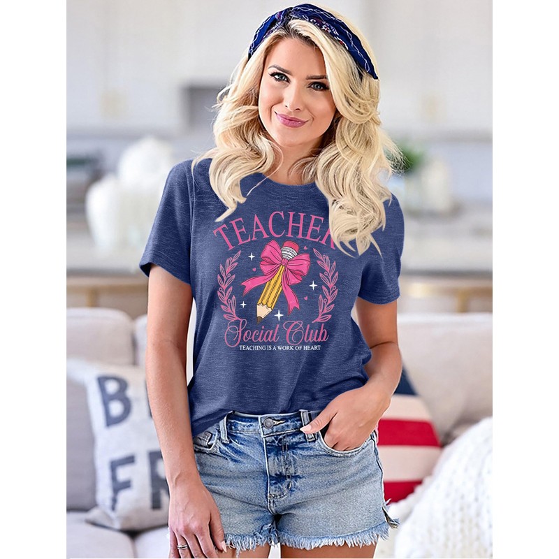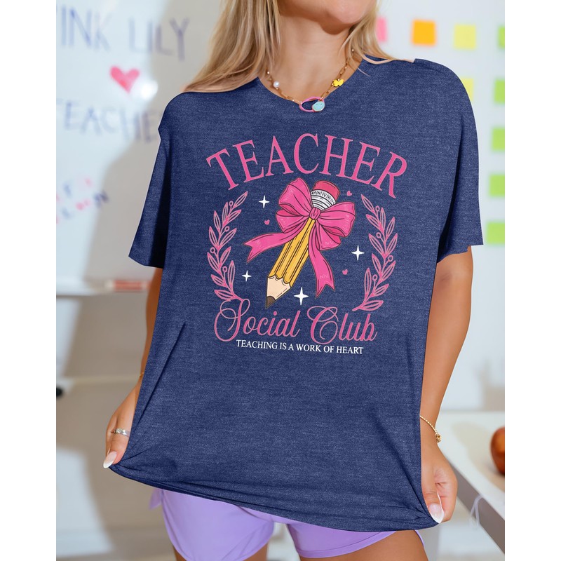 - Teacher Pencil Bow Top: 1*Teacher Social Club T-shirt First Day of School Shirt Back to School Tee Top.Please refer to the size chart.Please wash with cold water, do not dry clean or bleach, not dry flat.