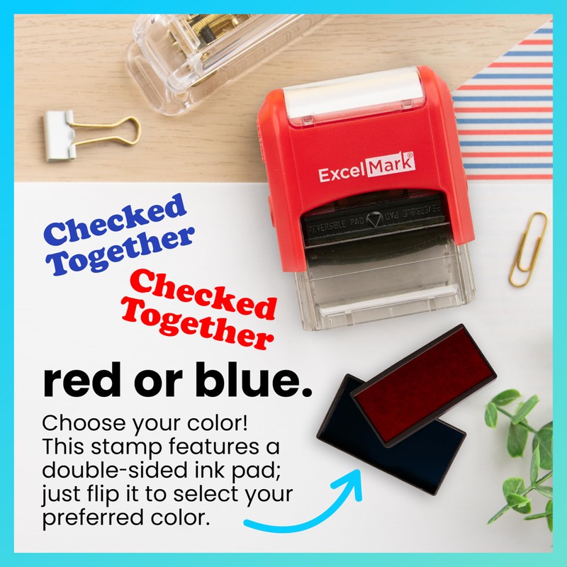• Features a two-color (Red/Blue) ink pad that doubles the number of impressions and the useful life of the pad
