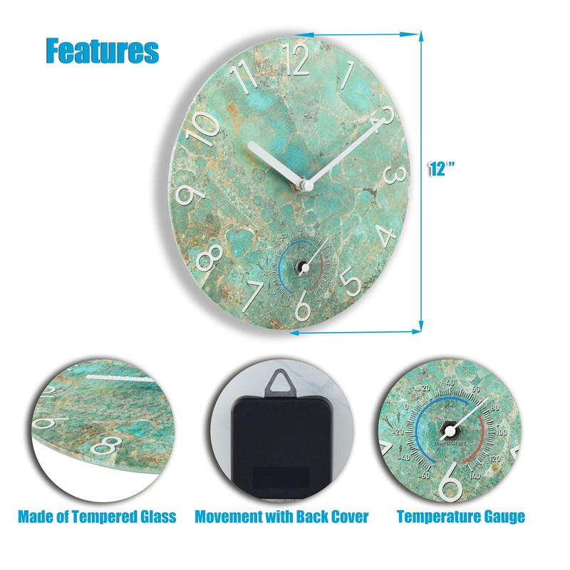 - Durable & Waterproof for Indoor & Outdoor Use -- Made with HD tempered glass, a back cover,a non-rusting copper shaft, and aluminum hands, this clock is built to last. Its waterproof construction allows it to be hung in humid areas like bathroom kitchen or outdoors near patio pool garden porch etc.