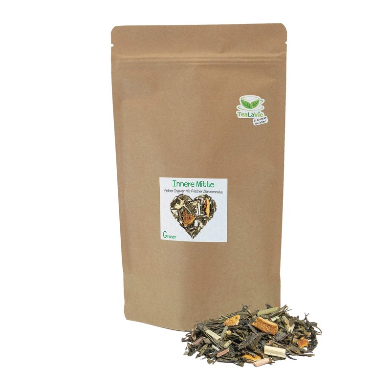 TEALAVIE - Green Tea Loose | Inner Centre - Fine Ginger with Fresh Lemon Note | Environmentally Friendly Refill Pack | 200 g Refill Loose Green Tea