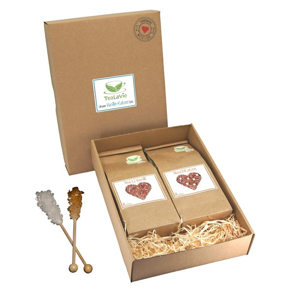 Exclusive tea in a set lovingly packaged by hand. You can expect two delicious Rooibo teas with candy sticks.