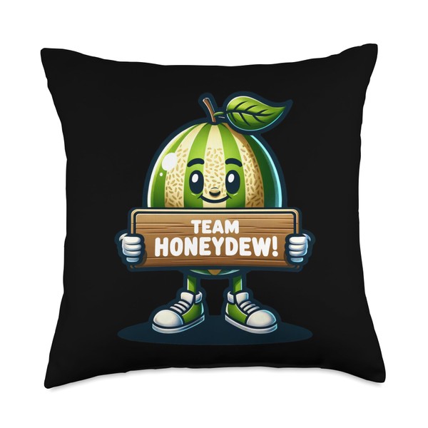 Team Honeydew Melon, Melon Mascot, Funny Fruit Vegetable Throw Pillow