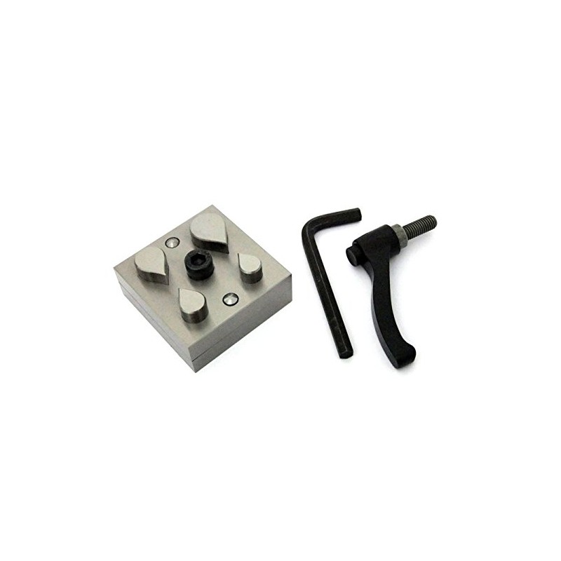 Cut perfect tear drop shaped discs every time! This disc cutter features 4 punches , in sizes approximately 11mm x 17mm up to 20mm x 30mm in size. The holes have been machined and honed to make fine, clean cuts. The punches are oil-quenched tool steel that have been drawn for hardness and durability. The base is case-hardened and ground. You can cut soft sheet up to 20ga. The tool measures about 3"x3". The black handle rotates to open and close the gap that your sheet metal slides into for a secure grip. To use it, remove all punches from the block, and select the size punch you would like. Place your sheet metal in the slot, adjust the lever to fit your metal, and place your punch, sharp side against the metal, in the correct slot. Strike the beveled side of the punch with a heavy mallet until it pierces through the sheet metal. Be careful of your fingers and other items on your work surface.