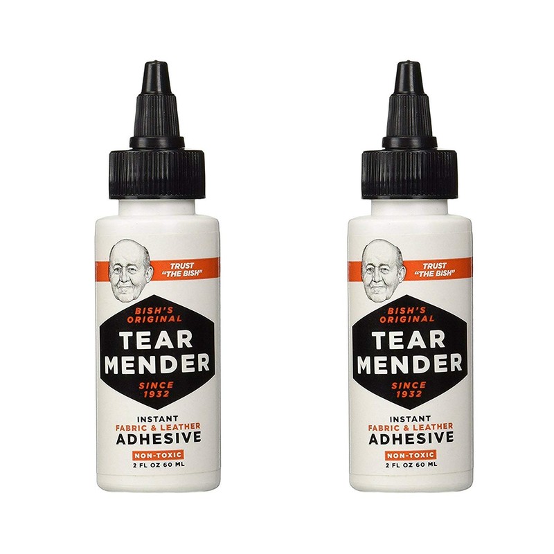 A natural, latex, non-toxic, acid-free adhesive that bonds permanently to anything it can penetrate and stays flexible. Bonds are usually wearable in 3 minutes and washproof in 15 minutes. Ideally suited for permanent bonds or repairs on clothing, leather, upholstery, home decor, sport and marine gear, and more. When dry, it is waterproof and UV-resistant. Repairs to items used both indoors and outdoors are durable and long lasting. Will not damage or discolor finished leather. Consumer Description VAL-A CHICAGO-Bish's Original Instant Tear Mender. Mend clothing, leather, upholstery, home decor, sport uniforms, indoor and outdoor fabrics and much more at home, the office, one the road and on the water! Features: water-proof, permanent, quick-dry, flexible, UV resistant and acid free. This package contains TWO BOTTLES of 2oz/60ml bottle. Made in USA.