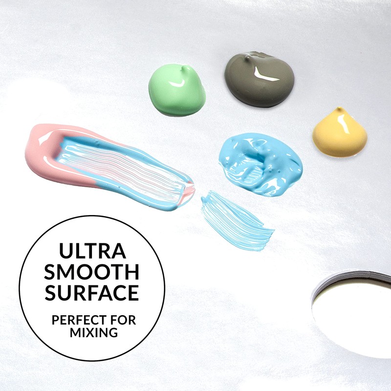 - ULTRA SMOOTH WORKABLE SURFACE: The palette pad is bound together with adhesive so you can easily detach each sheet. A thumb hole and a curved edge allows you to comfortably hold the palette which also provides a stable yet lightweight base. The 9x12-inch (21*29cm) surface is a suitable space for all your mixing needs