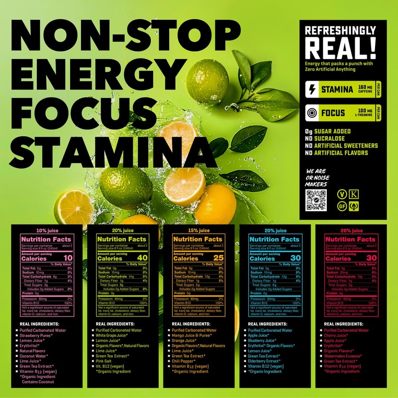 - BETTER INGREDIENTS. BETTER BENEFITS. Benefits of brewed tea blended with real fruit and sparkling water. Crafted with USDA Certified Organic, plant-based ingredients. Zero chemicals, zero synthetic stimulants, zero added sugar. No jitters. No Crash. No warning labels.