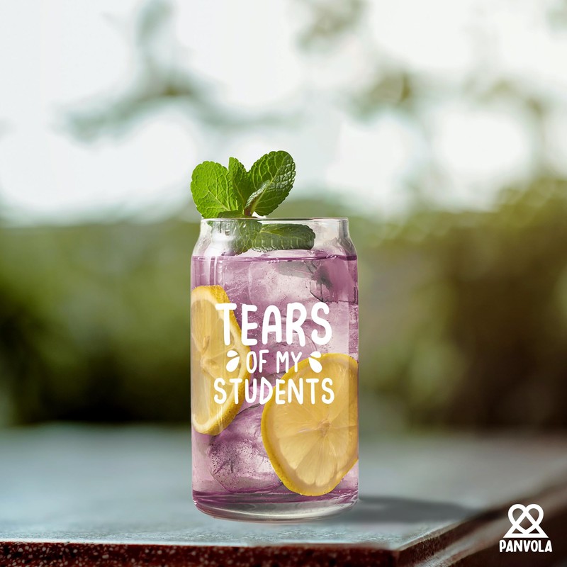 Tears of My Students Teacher Glass Cup with Bamboo Lids and Straw Glass Can Iced Coffee Glasses Teacher Gifts Drinking Jars Beer Glasses 16oz
