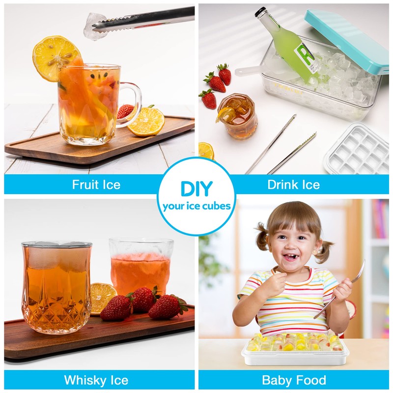 - KINDLY NOTE--The ice cube tray kits may take up some space in your refrigerator; If you only need to make ice cubes and don't require storage, you can choose to only use the trays and lid without the ice bin and accessories to save space